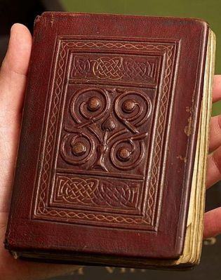 This is Cuthbert’s Gospel, the book that was buried at Lindisarne with St Cuthbert sometime after his death in 687. It is the earliest bound British—or even European—book to survive intact. It’s tiny, a pocket Gospel, written in Latin on vellum. It’s simple—no illumination, just elaborated initial letters, some with a bit of red—and beautiful.