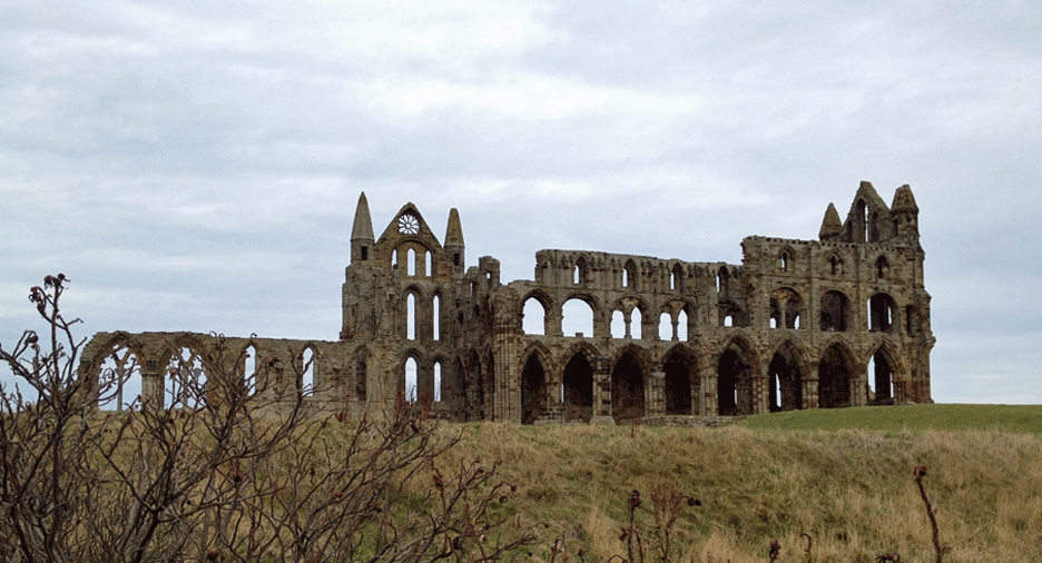 Whitby Abbey, of course, has been familiar to me for years. Sadly, when I was there this time, it was shut (no doubt as a result of this). No way in. Even the cliff was fenced off. I held my phone up over the wall: