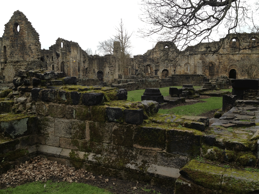I’ve decided that Edwin built his Elmet vill on the site of what had once been the hall of Ceredig, king of Elmet. The books opens in the heart of Ceredig’s territory, in Loidis, what is present-day Leeds. But Leeds is a big place. I had to narrow it down. I chose a site on the north bank of the River Aire, where Kirkstall Abbey now lies in ruins. Why? Because I know that patch of the river, I remember how it sounds and smells–and I remember it in childhood terms. I remember with the bone-deep familiarity I needed to conjure Hild’s first memories.