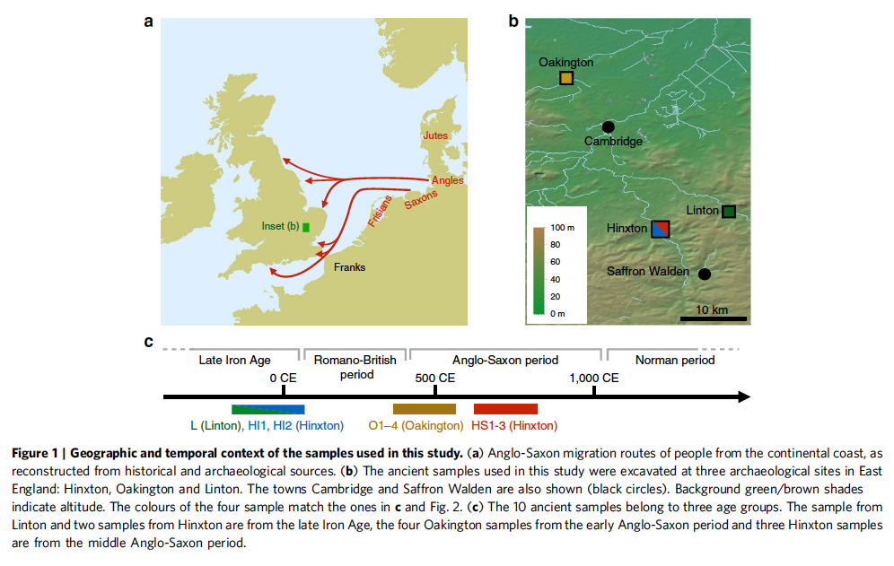 1 Schiffels, S. et al. Iron Age and Anglo-Saxon genomes from East England reveal British migration history. Nat. Commun. 7:10408 doi: 10.1038/ncomms10408 (2016). All quotes and images used under Creative Commons licence.