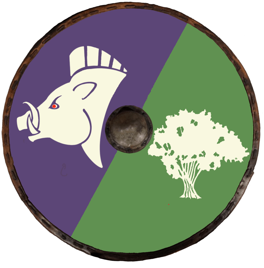 So for Hild (and now Menewood) I decided that some (though not all) forces would paint their shields with their leader’s tribal totem, while others would have individually-painted shields but fight under common banners. And still others might do both.3 I didn’t get too systematic in the first book, beyond deciding roughly what colour/shape kingdoms such as Deira and Lindsey and Gwynedd might choose (brown bull, purple boar, and red dragon, respectively). Menewood, though, centres on war and its consequences; I needed to get specific.