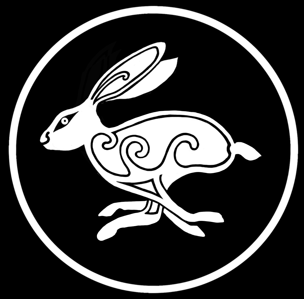 By now I felt in good form and thought, Fuck it, I can so too draw a purely Pictish seated hare! And so I did. It’s not as dynamic as the running hares, and the front paws need work, but oddly, without the Lindisfarne-style inner lines, it seems to have more personality. I think it needs a name—open to suggestions…